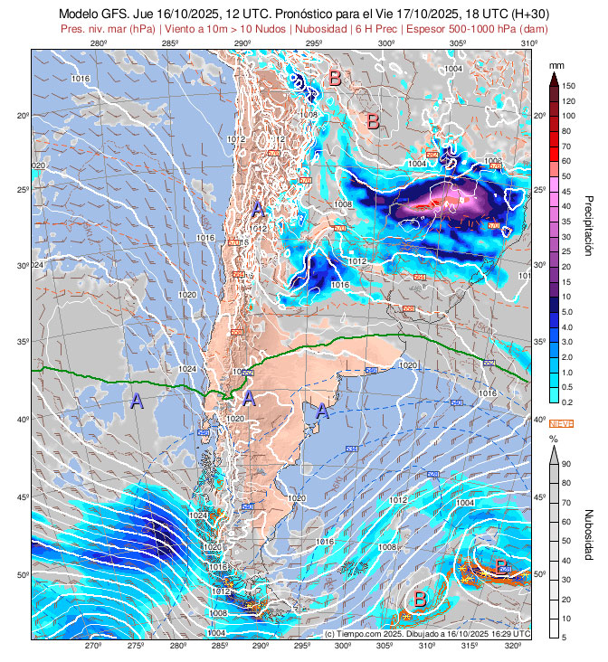 Para el  viernes 17 de octubre de 2025 a las 18 UTC = 15:00 hora local