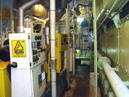 El interior está totalmente desmantelado; se sacaron los dos motores "Sulser" de 8 cilindros en línea y 1.200 caballos cada uno que serán reemplazados por dos nuevos motores diesel turbo alimentados, de igual potencia y una tercera parte de peso y tamaño. La avería de consideración de uno de estos motores, que obligó a suspender el 38º viaje anual de instrucción, fue el detonante para decidir las reparaciones que se están realizando.