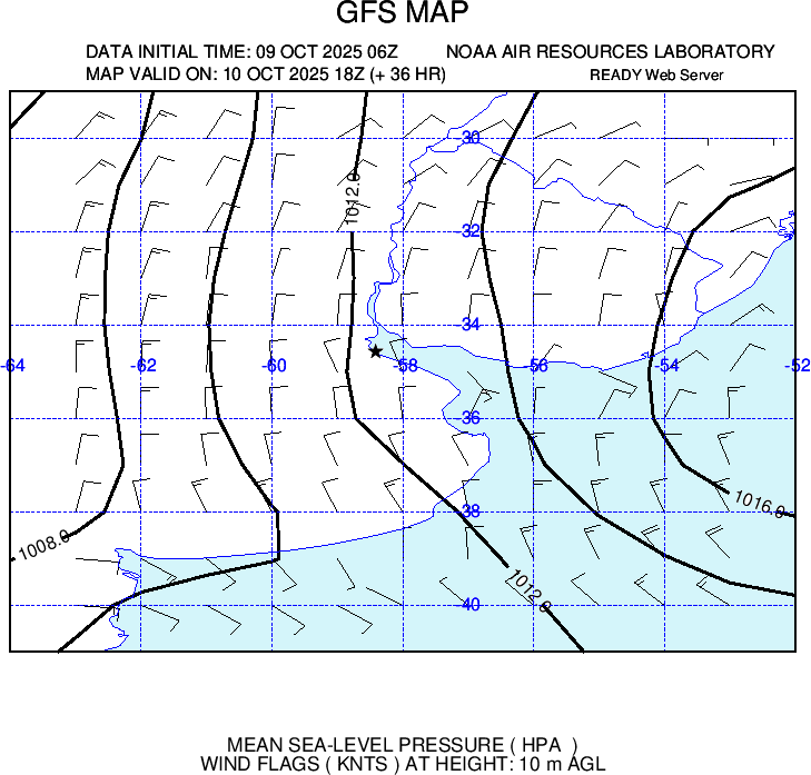 Presenta ploteo de vientos e isobaras cada 2 hPa
