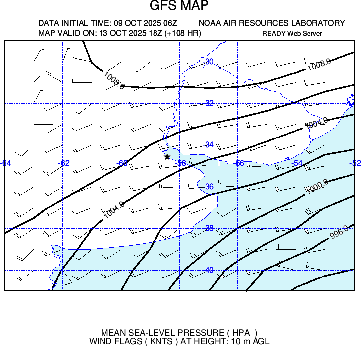 Presenta ploteo de vientos e isobaras cada 2 hPa