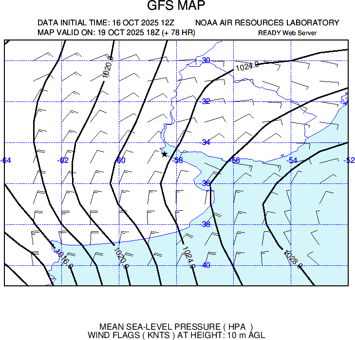 Ploteo de vientos En las cartas adjuntas los vientos se encuentran ploteados, facilitando la lectura de la dirección e intensidad. La dirección graficada con una barra indica desde donde viene el viento, uno de los extremos tiene un pequeño círculo que es el lugar de la observación y el otro extremo el cuadrante según la rosa de los vientos; de este último nacen las barbas que indican la intensidad del viento, para una barba larga 10 nudos, una corta 5 nudos y un triángulo 50. La sumatoria de ellas es la intensidad del viento previsto en Knt (nudos) o sea millas por hora. Para convertirlo a km/h se deberá utilizar la siguiente fórmula: 1kt = 1,852 km/h. Para hacer una cuenta rápida y obtener un valor aproximado, multiplicar por 2 y restar el 10%.
