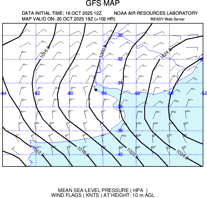 Presenta ploteo de vientos e isobaras cada 2 hPa