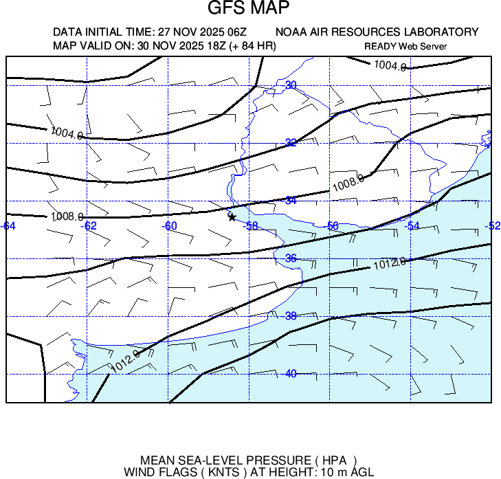 Presenta ploteo de vientos e isobaras cada 2 hPa