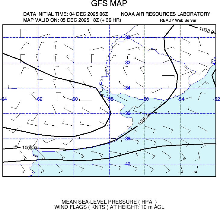 Presenta ploteo de vientos e isobaras cada 2 hPa