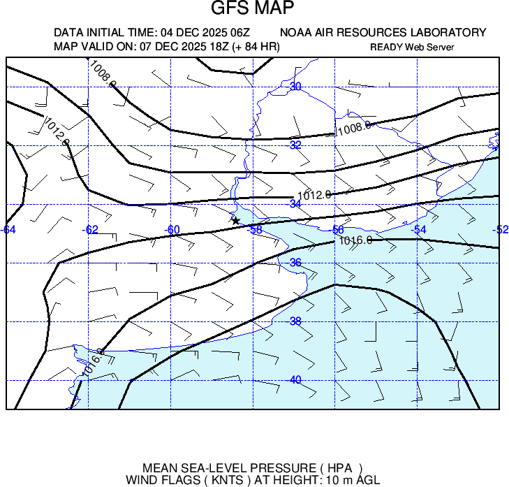 Presenta ploteo de vientos e isobaras cada 2 hPa