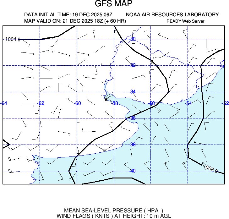 Presenta ploteo de vientos e isobaras cada 2 hPa