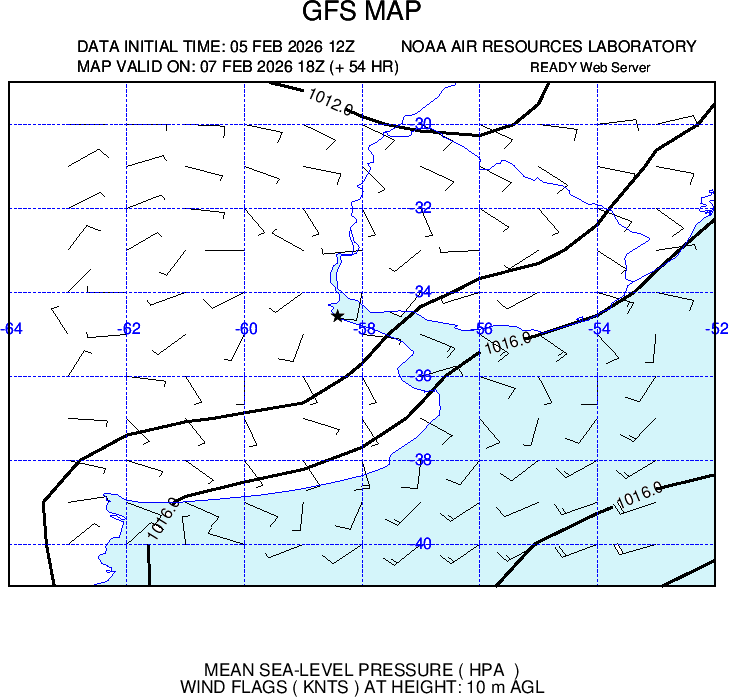 Presenta ploteo de vientos e isobaras cada 2 hPa