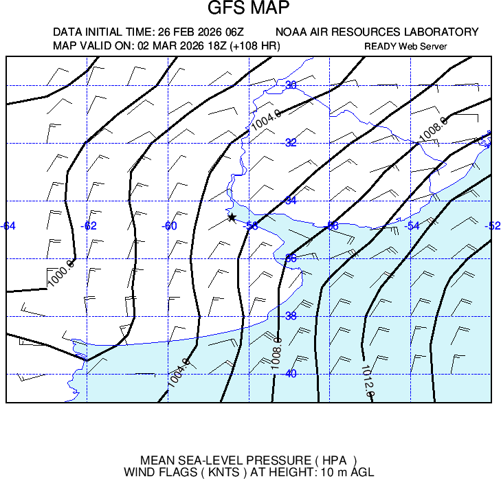 Presenta ploteo de vientos e isobaras cada 2 hPa