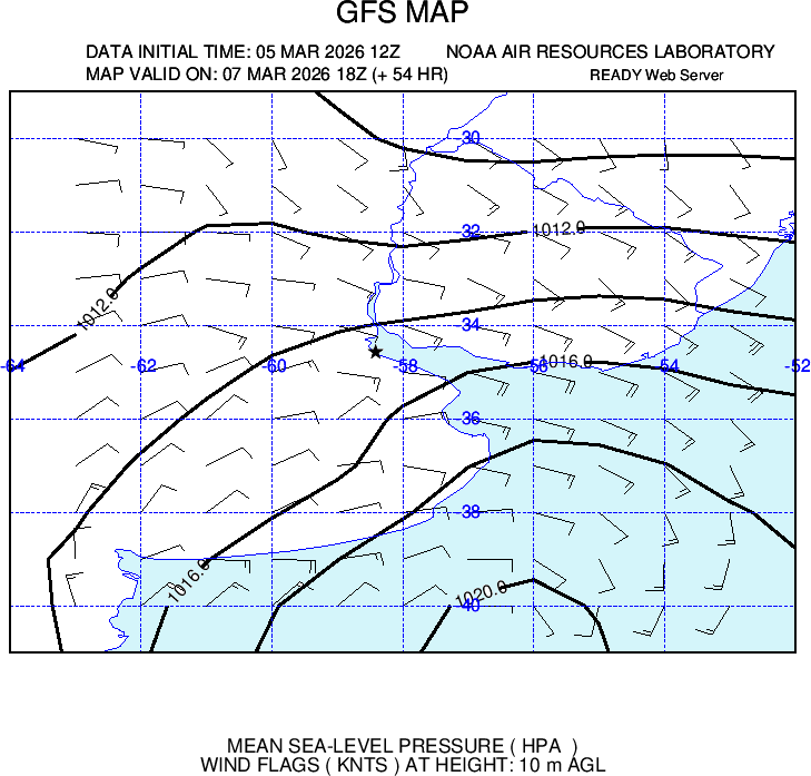 Presenta ploteo de vientos e isobaras cada 2 hPa
