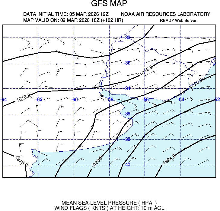 Presenta ploteo de vientos e isobaras cada 2 hPa