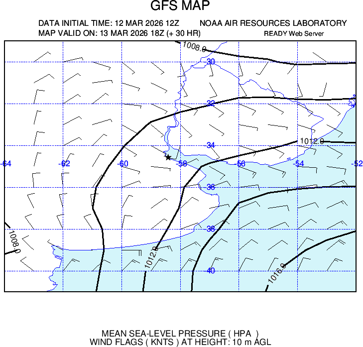 Presenta ploteo de vientos e isobaras cada 2 hPa