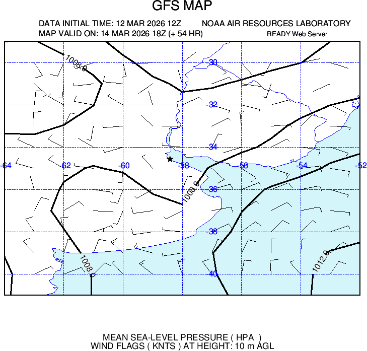 Presenta ploteo de vientos e isobaras cada 2 hPa