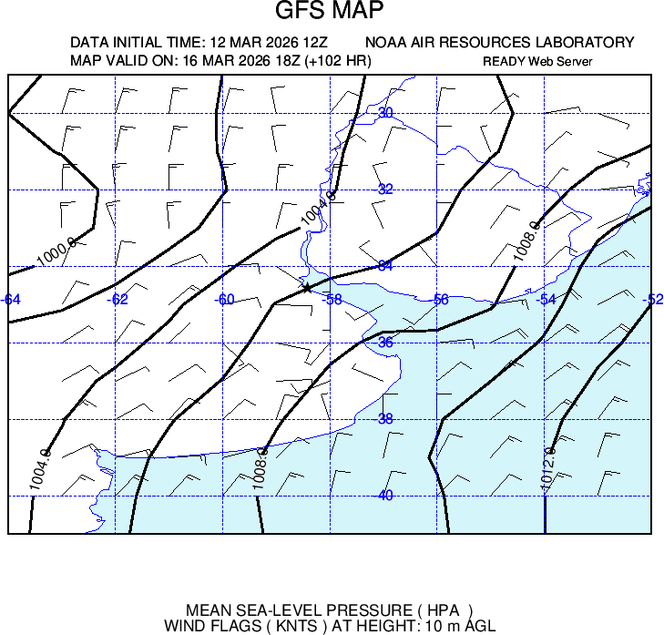 Presenta ploteo de vientos e isobaras cada 2 hPa
