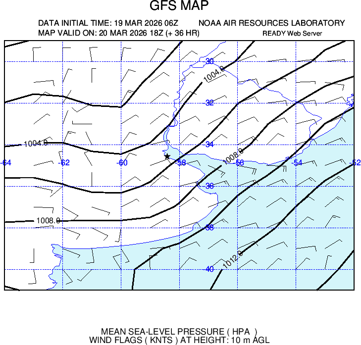 Presenta ploteo de vientos e isobaras cada 2 hPa