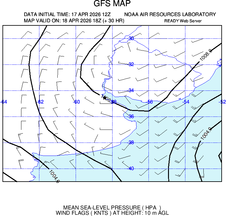 Presenta ploteo de vientos e isobaras cada 2 hPa