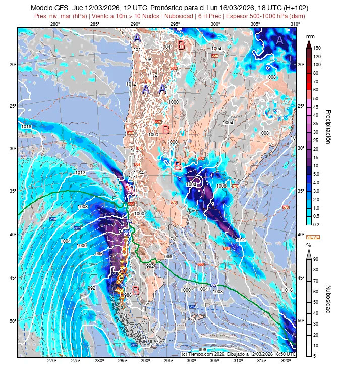 Para el  lunes 16 de marzo de 2026 a las 18 UTC = 15:00 hora local
