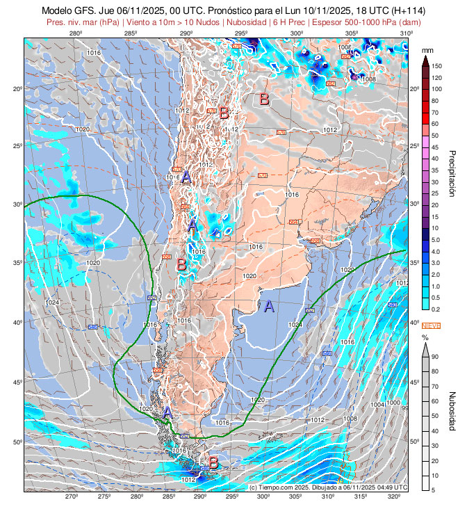 Para el  lunes 10 de noviembre de 2025 a las 18 UTC = 15:00 hora local